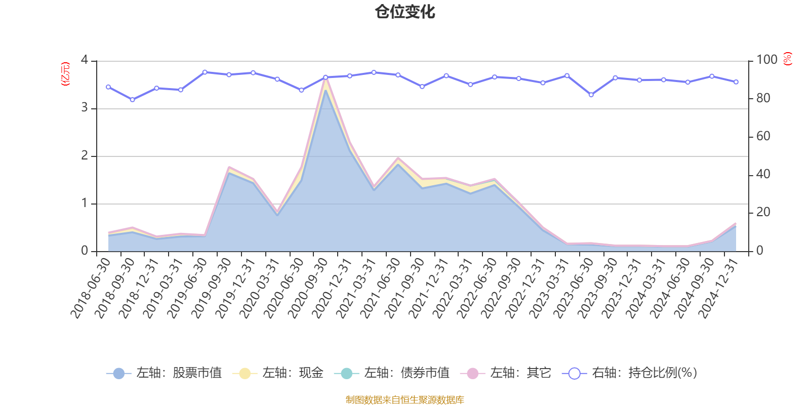 据定期报告数据统计,近三年平均股票仓位为89.41%,同类平均为79.9%。2019年上半年末基金达到94.02%的最高仓位,2018年三季度末最低,为79.59%。
