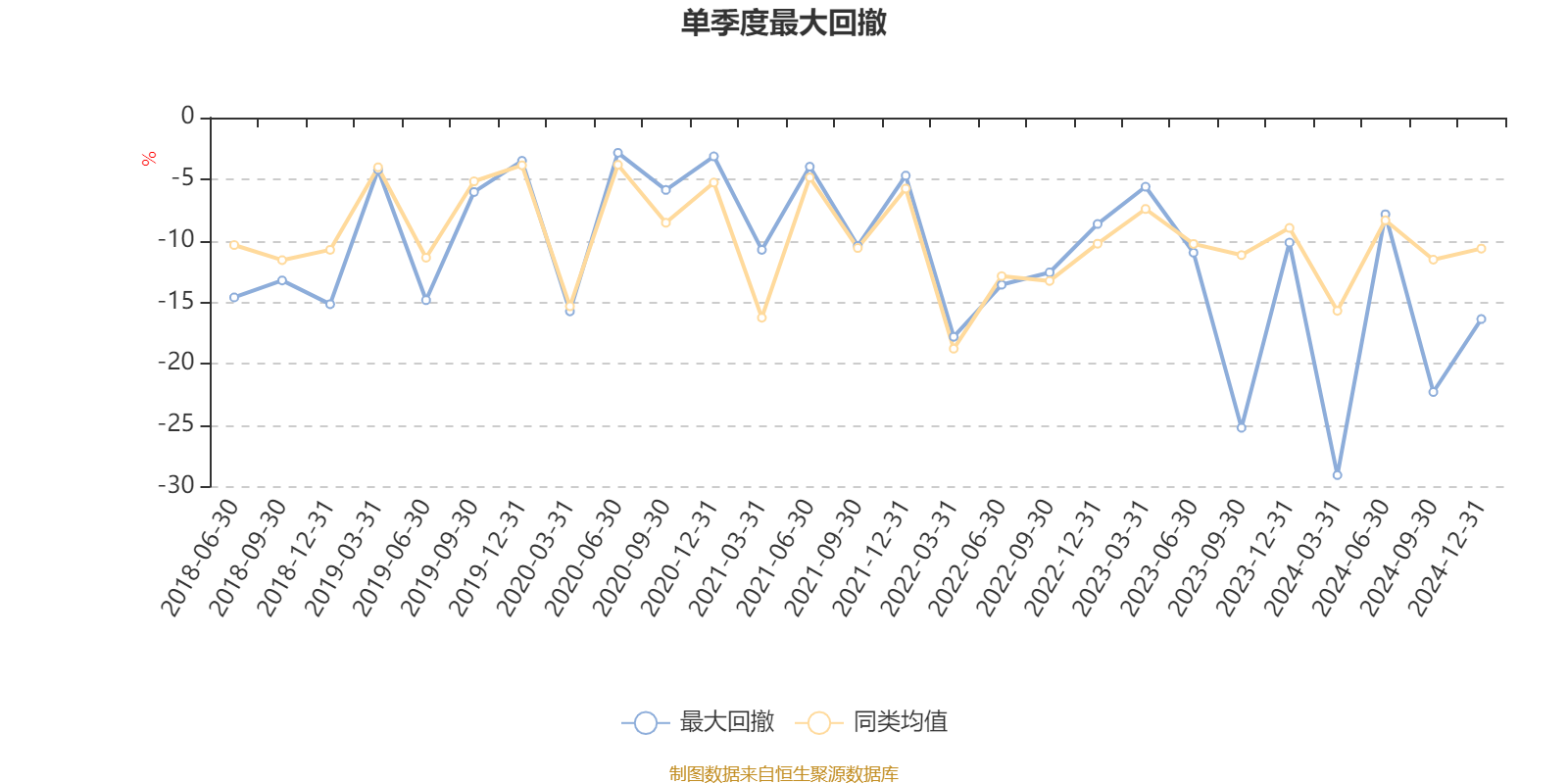 截至1月22日,基金近三年最大回撤为56.29%,同类可比基金排名63/901。单季度最大回撤出现在2024年一季度,为29.07%。