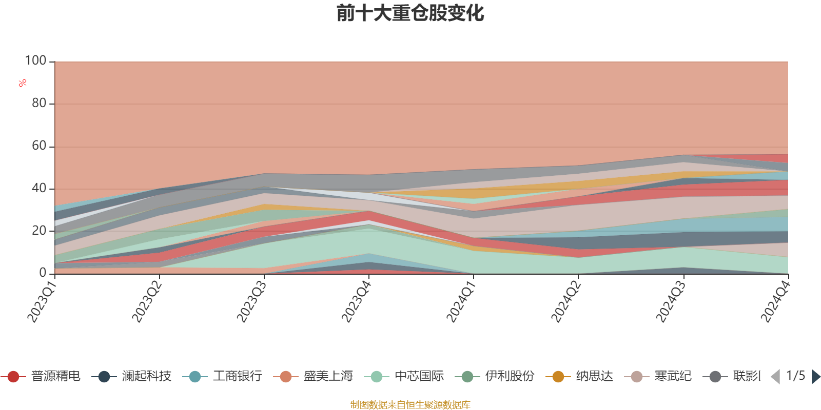 截至2024年四季度末,基金十大重仓股分别是中芯国际、海光信息、宁德时代、寒武纪、北方华创、比亚迪、恒瑞医药、金地集团、中科飞测、保利发展。
